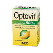 Optovit fortissimum 500. Wirkstoff: RRR-alpha-Tocopherol (Vitamin E). Anwendungsgebiete: Optovit fortissimum ist ein Vitaminpräparat zur Behandlung eines Vitamin E-Mangels. Optovit fortissimum 500 ist nicht geeignet zur Behandlung von Vitamin E-Mangelzuständen, die mit einer gestörten Aufnahme von Vitamin E aus dem Darm einhergehen. In diesen Fällen stehen parenterale Zubereitungen (Spritzen) zur Verfügung. Enthält Sorbitol und Sojaöl. Sojaöl (Ph. Eur.) kann sehr selten allergische Reaktionen hervorrufen. HERMES ARZNEIMITTEL GMBH, 82049 Großhesselohe/München.